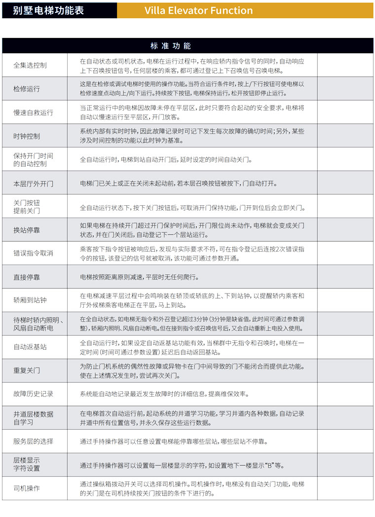 ?? 天津市洋郡電梯有限公司.是一家電梯設(shè)計、銷售、安裝、維保服務(wù)為一體。主營各種電梯產(chǎn)品,包括別墅電梯、觀光電梯、乘客電梯、住宅 安裝便捷 無需獨(dú)立機(jī)房,自帶一體化井道。安裝非常簡便,只需一周左右即可完成,而且可以直接安裝在已經(jīng)完成裝修的地板上而不破壞現(xiàn)有裝修。